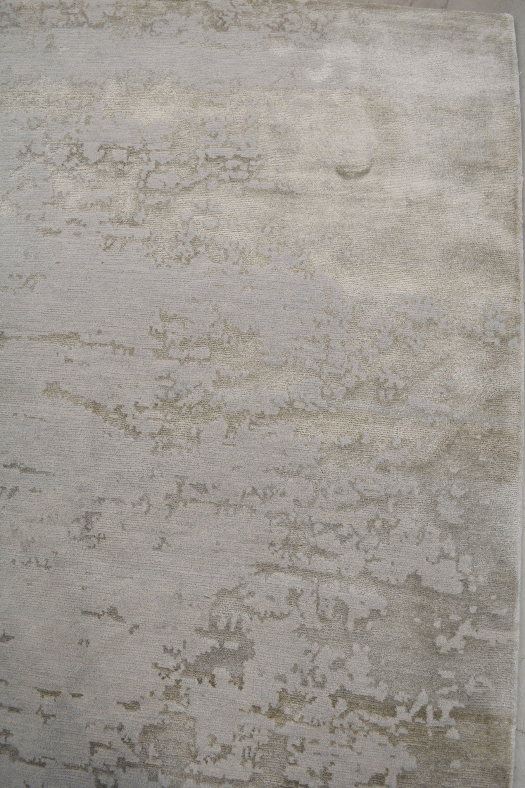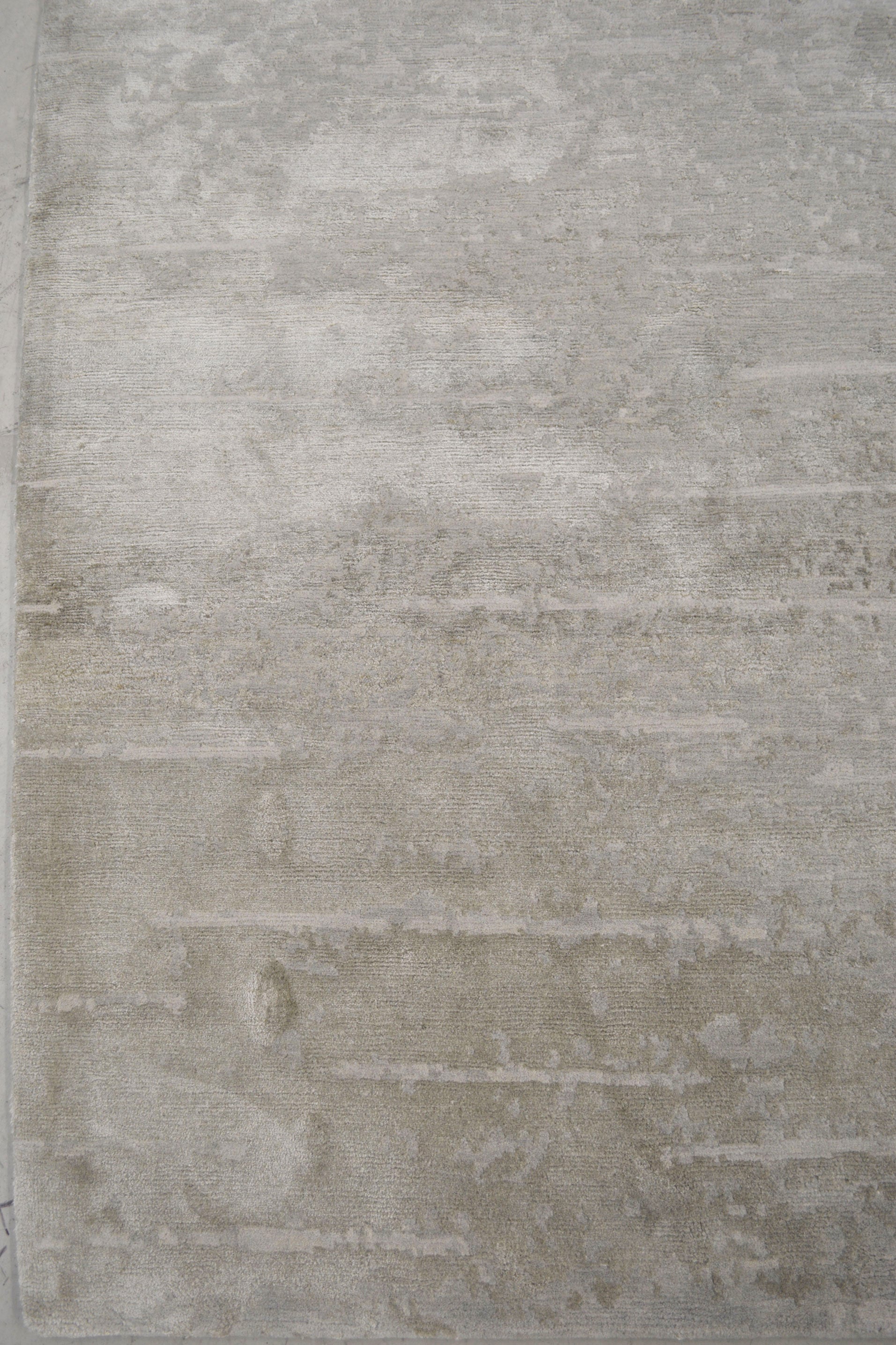 Modern carpet comes with gray background, and a darker gray street texture on top. This rug can be great for the lobby of your office. On the bottom left corner, the contrast between the background and the design is outstanding. On the top right corner, the texture takes more space over the rug. The center's close-up displays the knot's texture in horizontal direction.